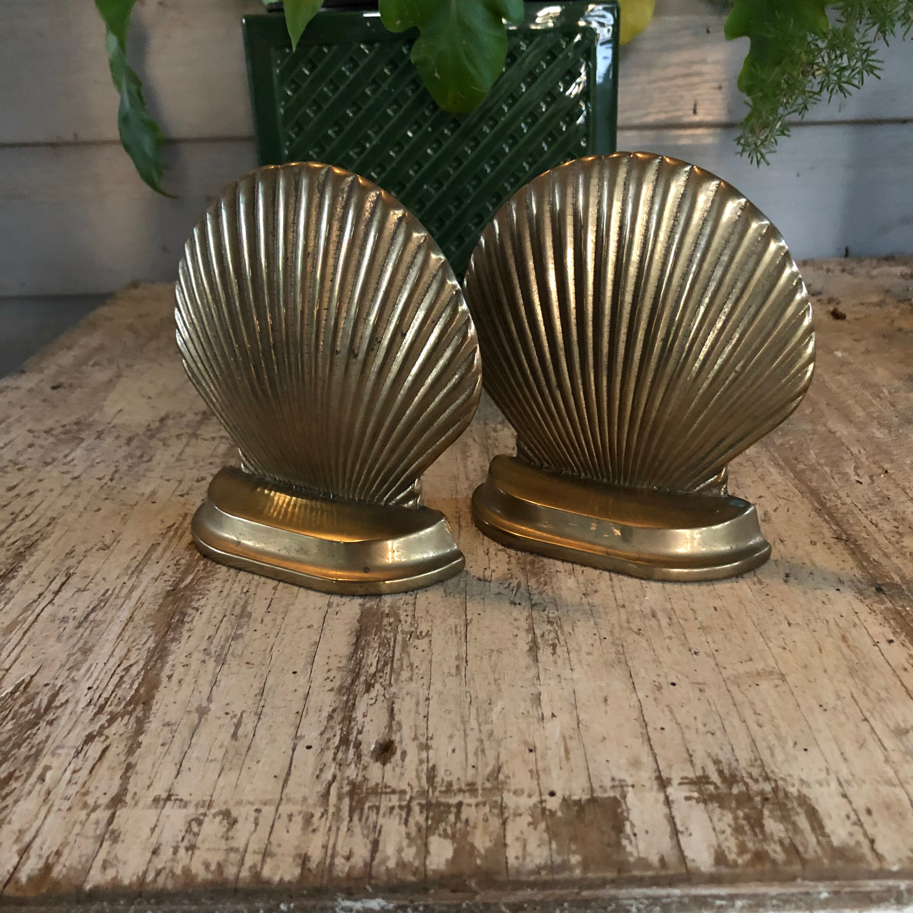 Vintage Brass Shell Bookends Door Stops Solid Brass Bookend Etsy