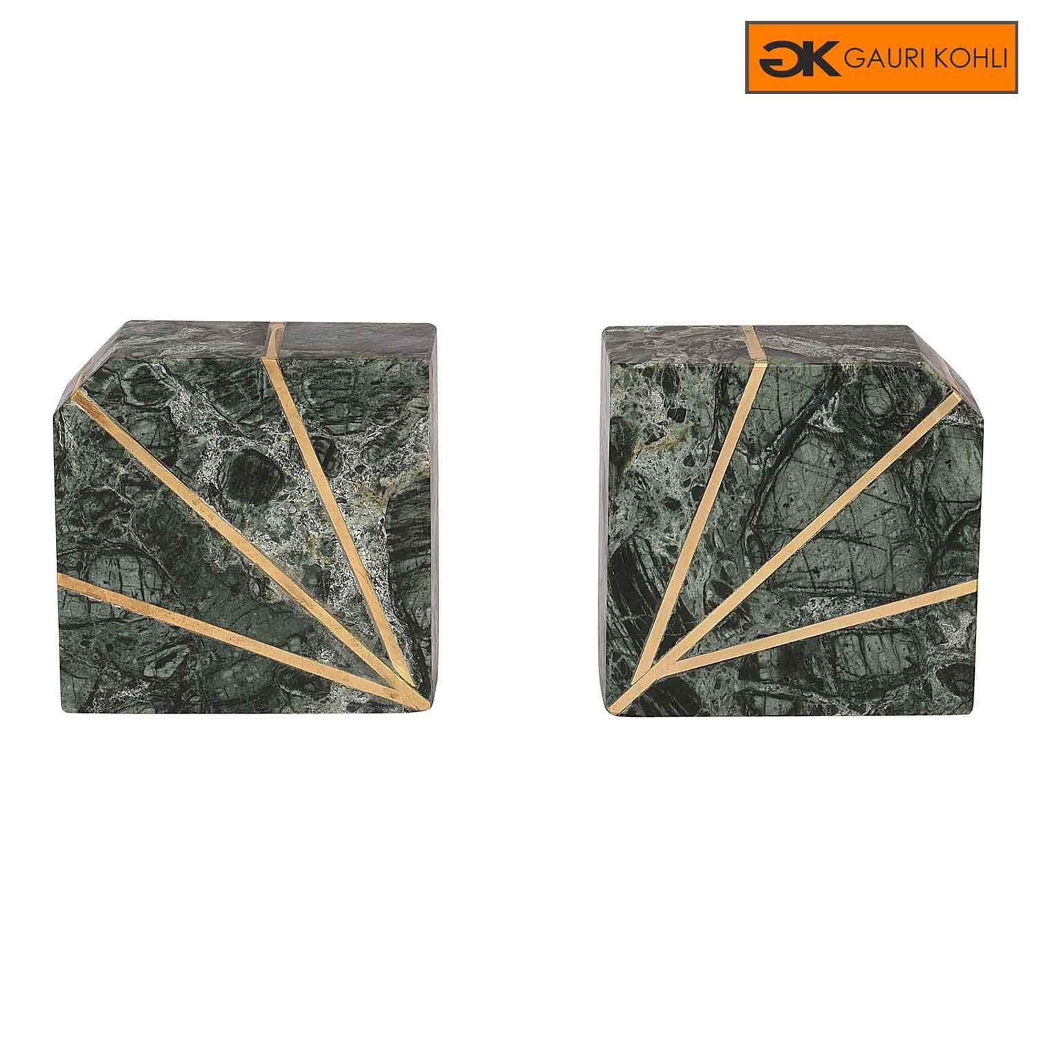 Buy Gauri Kohli Marble Bookends With Brass Inlay Set Of 2 Green Online At Desertcart Aruba