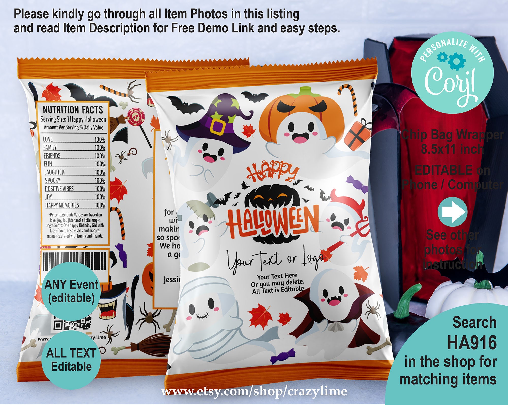 Reimagine Your Halloween With Unique Costumes Decor More. Editable Spooky Halloween Chip Bags for kids. FREE HALLOWEEN CHIP BAG.