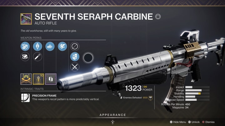 Seventh Seraph Carbine God Roll Guide Beyond Light Auto Rifle Destiny 2 Youtube
